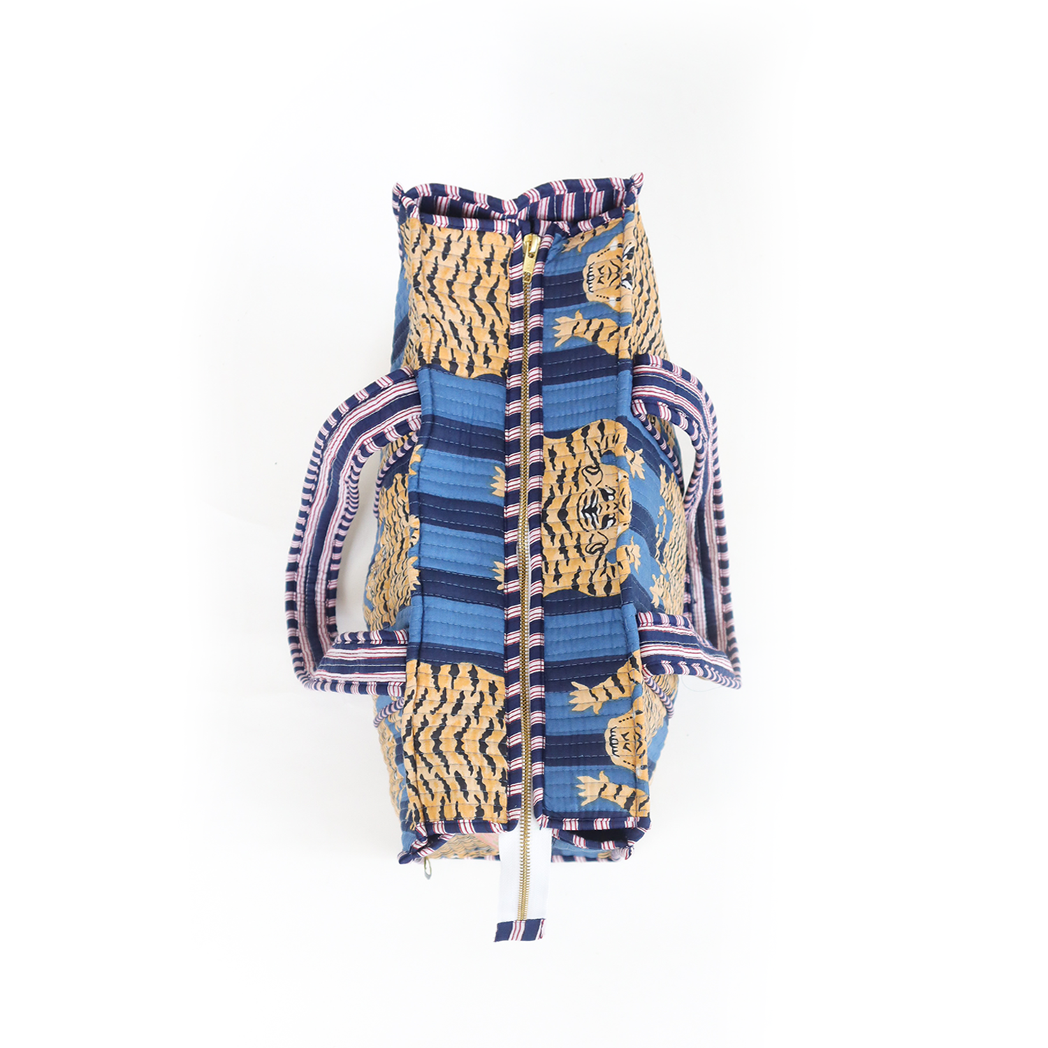 Gemaakt van 100% katoen. De tas heeft een ritssluiting waardoor je spullen goed opgeborgen kunnen worden. Binnen in de tas zit een klein vakje. De binnenkant van de tas is leuk afgewerkt met een gestreept design.